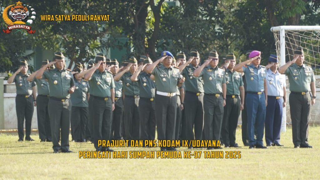Denpasar, Danrem 163/Wira Satya Brigjen TNI Ida Idewa Agung Hadisaputra menghadiri upacara Peringatan Hari Sumpah Pemuda ke-97 Tahun 2025 dengan penuh hikmat Selasa (28/10/2025), Lapangan I Gusti Ngurah Rai Kepaon, Peringatan Hari Sumpah Pemuda diikuti Prajurit dan PNS Segarnezun Denpasar, selaku Inspektur Upacara (Irup) Kasdam IX/Udayana  Brigjen TNI Taufiq Hanafi, Tema Hari Sumpah Pemuda 2025 adalah “Pemuda Pemudi Bergerak, Indonesia Bersatu”. yang mengandung pesan tentang upaya mewujudkan kejayaan Indonesia di masa mendatang perlu dicapai dengan kolaborasi lintas generasi dan elemen bangsa.
