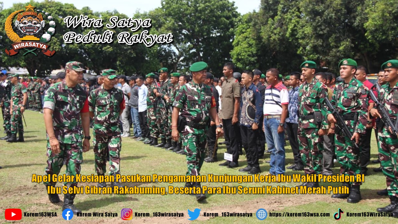 Denpasar, Danrem 163/Wira Satya (Brigen TNI Ida Idewa Agung Hadisaputra) memimpin Kegiatan Apel Gabungan dalam rangka Kesiapan Pasukan Pengamanan Kunjungan Kerja Ibu Wapres RI (Ibu Selvi Gibran Rakabuming) beserta para Ibu Seruni Kabinet Merah Putih (KMP) dan rombongan di wilayah Prov. BALI Tahun 2025 dipimpin oleh Danrem 163/WSA (Brigjend TNI Ida I Dewa Agung Hadisaputra), dan diikuti ± 200 orang, Bertempat di Lapangan Makorem 163/WSA, Jl. PB. Sudirman No. 01, Dauh Puri, Kec. Denpasar Barat, Kota Denpasar, pada hari Kamis (6/11/2025).