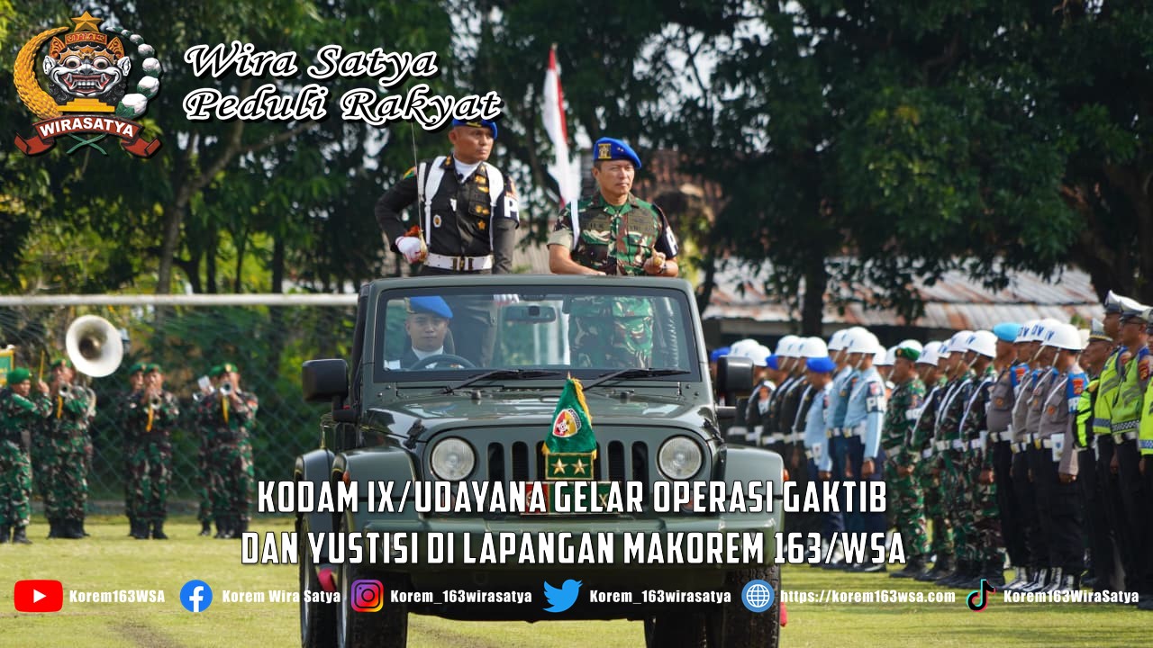 Upacara tersebut turut dihadiri pejabat utama Kodam IX/Udayana, unsur Kepolisian Polda Bali, serta perwakilan instansi penegak hukum lainnya. Kegiatan ini menandai dimulainya pelaksanaan Operasi Gaktib dan Yustisi Polisi Militer TNI TA 2026 secara serentak di seluruh wilayah hukum Kodam IX/Udayana sebagai bagian dari komitmen menjaga disiplin, profesionalisme, dan kehormatan prajurit TNI.(Penrem163).