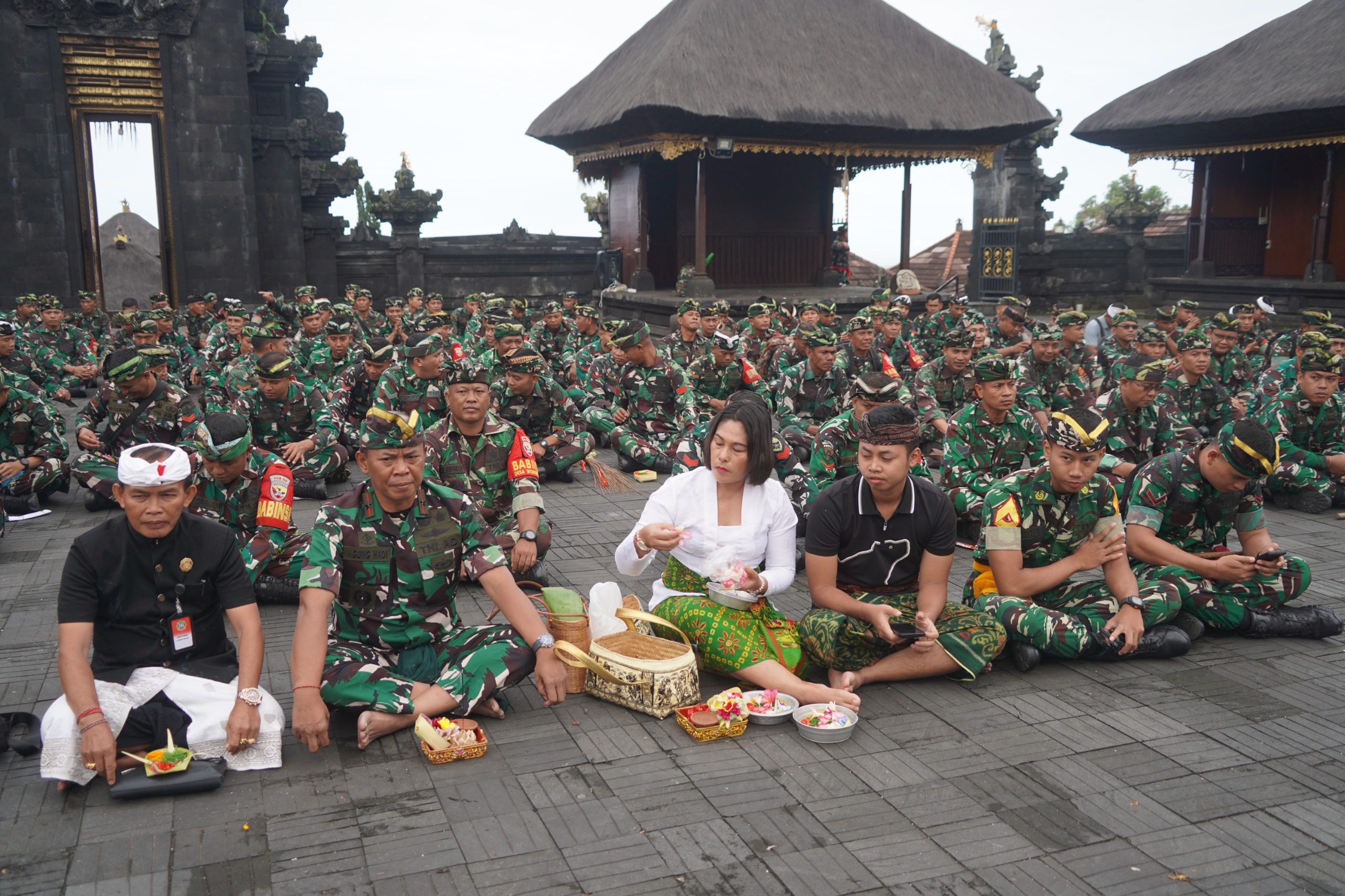 Sebelum melaksanakan pembersihan, Danrem dan anggotanya diarahkan ke Bale pesandekan, kemudian melaksanakan persembahyangan Panca Sembah bersama yang dipimpin oleh jero mangku darma di Pura Penataran Agung Besakih.
